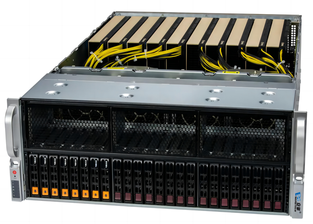 亚博EG8420G4是一款面向云计算、大数据、AI等应用场景的高性能服务器,支持第四代英特尔®可扩展处理器。在4U空间内最高支持10块全高全长双宽GPU,支持NVIDIA® NVLink™ Bridge,具有高扩展和高可用性,适用于HPC、VDI、深度学习等场景。