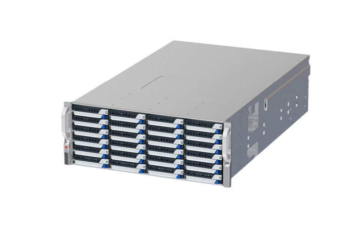 亚博EG5415G4最大支持1颗4代/5代英特尔®至强®可扩展系列处理器,最大TDP225W,整机最大提供36个3.5英寸硬盘槽位,后置2个2.5英寸硬盘槽位,提供海量的存储空间。拥有强大的存储扩展能力,优化的散热和防 共振设计带来安全稳定的运行环境,是亚博为针对通信、互联网、视频存储等客户需求推出的一款高性价比4U存储服务器产品。